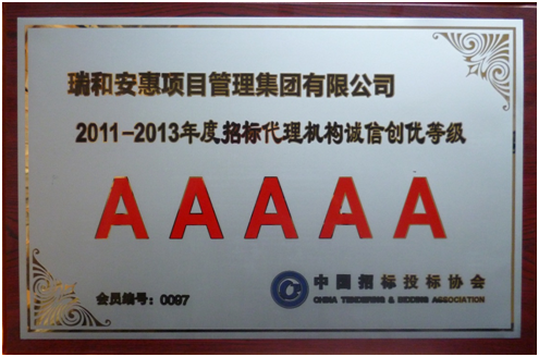 12月28日,2011-2013年度招標代理機構(gòu)誠信創(chuàng)優(yōu)總結(jié)大會在京隆重舉行,瑞和安惠項目管理集團再獲“中國招標投標協(xié)會2011-2013年度招標代理機構(gòu)誠信創(chuàng)優(yōu)5A等級”殊榮。