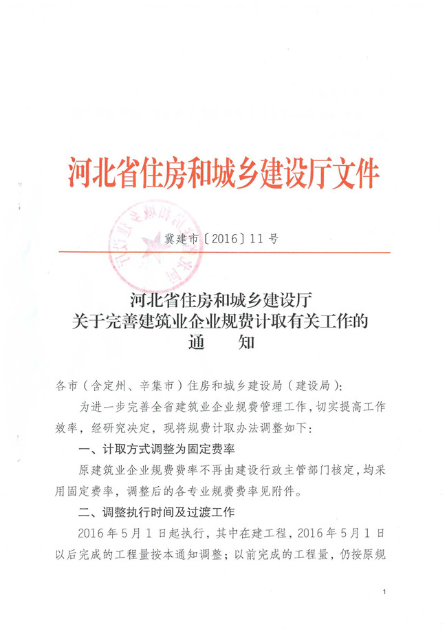 河北省住房和城鄉(xiāng)建設(shè)廳關(guān)于完善建筑業(yè)企業(yè)規(guī)費(fèi)計(jì)取有關(guān)工作的通知