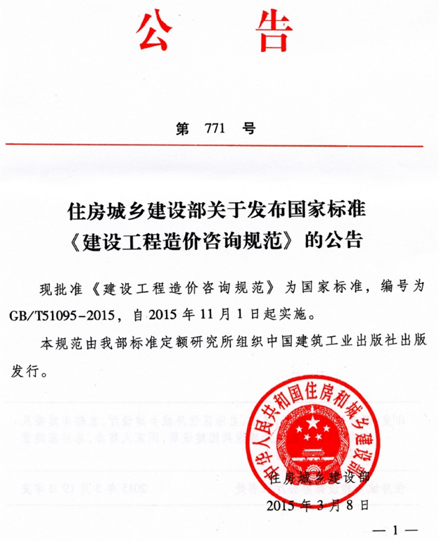 住房城鄉(xiāng)建設(shè)部關(guān)于發(fā)布國(guó)家標(biāo)準(zhǔn)《建設(shè)工程造價(jià)咨詢規(guī)范》的公告