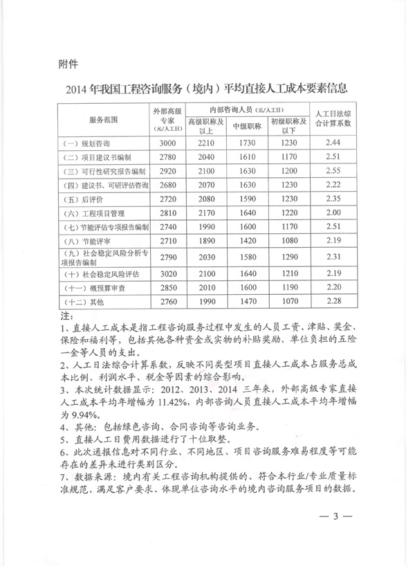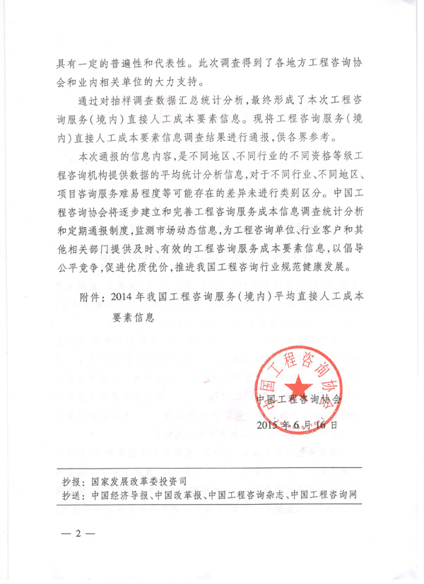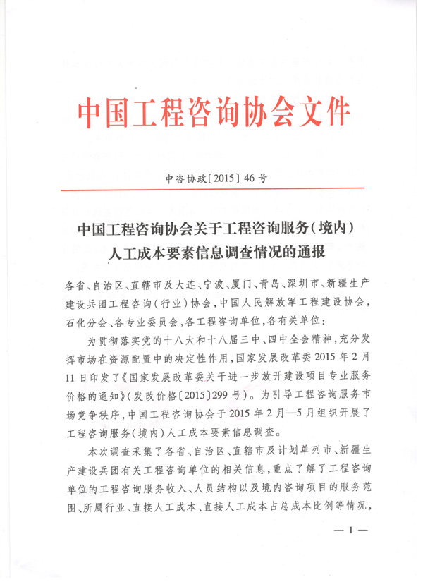 中國工程咨詢協(xié)會關(guān)于工程咨詢服務(wù)(境內(nèi))人工成本要素信息調(diào)查情況的通報(bào)