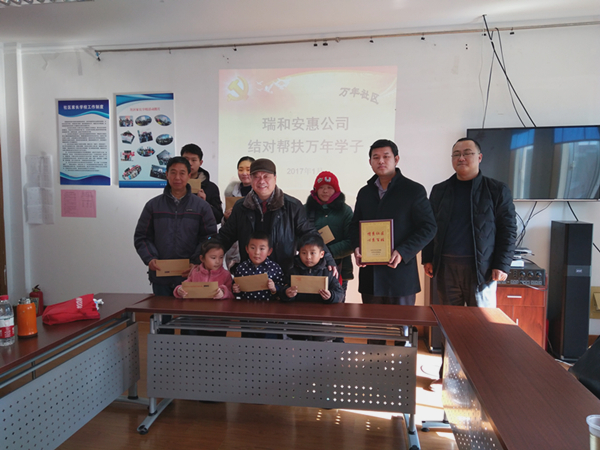 2017年1月20日上午,我公司總經(jīng)理王燕鳴、市場總監(jiān)芮銳銳等參加了瑞和安惠公司結對幫扶萬年學子活動。活動現(xiàn)場,公司王燕鳴總經(jīng)理鼓勵學生們要樂觀積極,好好讀書,通過學習改變命運?;顒咏Y束后,公司領導及萬年社區(qū)居委會一行人走訪了其中2戶受助家庭,了解受助家庭的實際困難,提供切實幫助。此次活動我公司共結對助學10戶,累計捐助助學金5000元,獲中共萬年社區(qū)黨委,萬年社區(qū)居委會頒發(fā)的“情系社區(qū),心系百姓”證書。瑞和安惠公司始終不忘自己的社會責任,在結對助學的同時,也為姑蘇區(qū)慈善基金會捐款5000元,用以資助社會慈善公益事業(yè)。