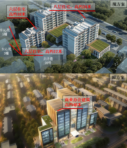 本項(xiàng)目位于北許巷41號(hào)。本次住宅項(xiàng)目擬建3幢住宅、配套商業(yè)服務(wù)網(wǎng)點(diǎn)、物業(yè)用房及地下車庫(kù)等,其中西側(cè)1幢6層住宅高約18米,東側(cè)2幢8層住宅高約24米。原商業(yè)辦公項(xiàng)目高約40米,蘇州佳榮置業(yè)有限公司考慮到周邊居民對(duì)商務(wù)辦公樓建成后在日照采光、噪音等方面影響的意見(jiàn),現(xiàn)計(jì)劃實(shí)施本住宅項(xiàng)目。