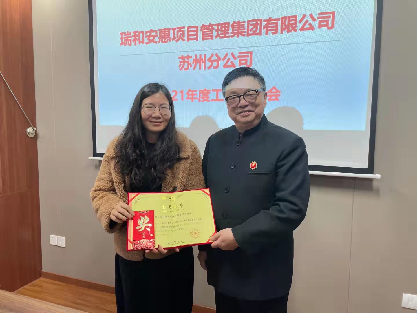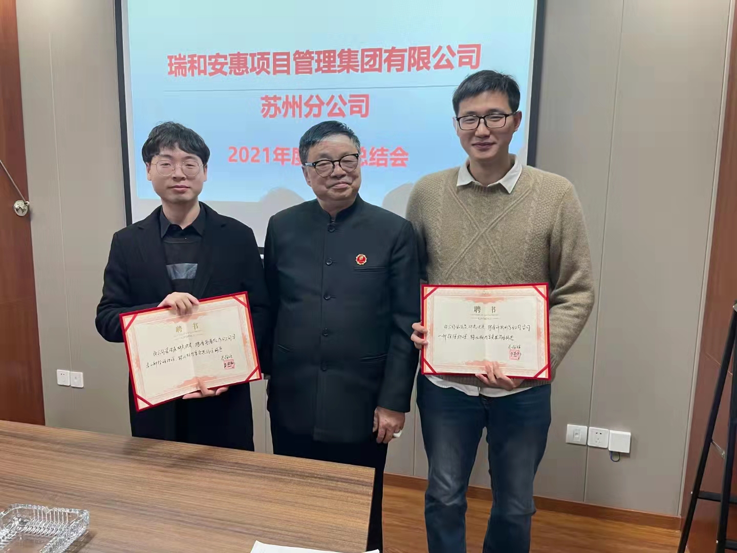 2022年1月25日,瑞和安惠蘇州分公司召開(kāi)2021年工作總結(jié)大會(huì),會(huì)議由芮銳銳副總經(jīng)理主持。會(huì)議首先聽(tīng)取了各部門2021年工作總結(jié)及2022年度工作計(jì)劃。會(huì)上公司對(duì)成績(jī)突出的員工進(jìn)行了表彰,對(duì)成績(jī)優(yōu)異的員工進(jìn)行了晉級(jí)嘉獎(jiǎng)。副總經(jīng)理芮銳銳做了年度工作總結(jié)報(bào)告,回顧了2021年度各項(xiàng)工作情況和取得的成績(jī),總結(jié)了工作中存在的不足,明確了2022年努力的方向。會(huì)議最后由公司總經(jīng)理王燕鳴作會(huì)議總結(jié)。